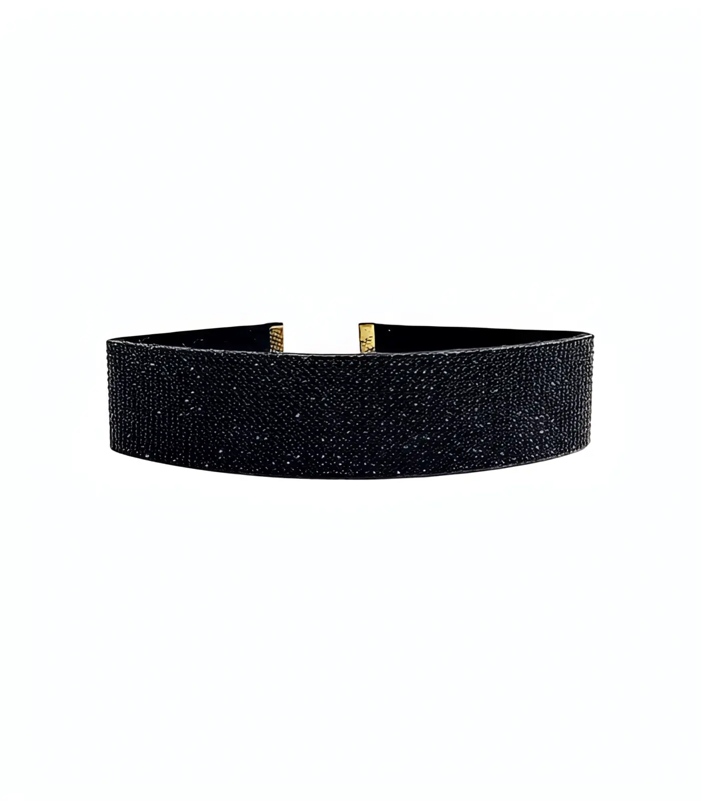 Must lai choker, mis on kaunistatud diskreetsete sädelevate detailidega, pakkudes lihtsat ja elegantset viimistlust.