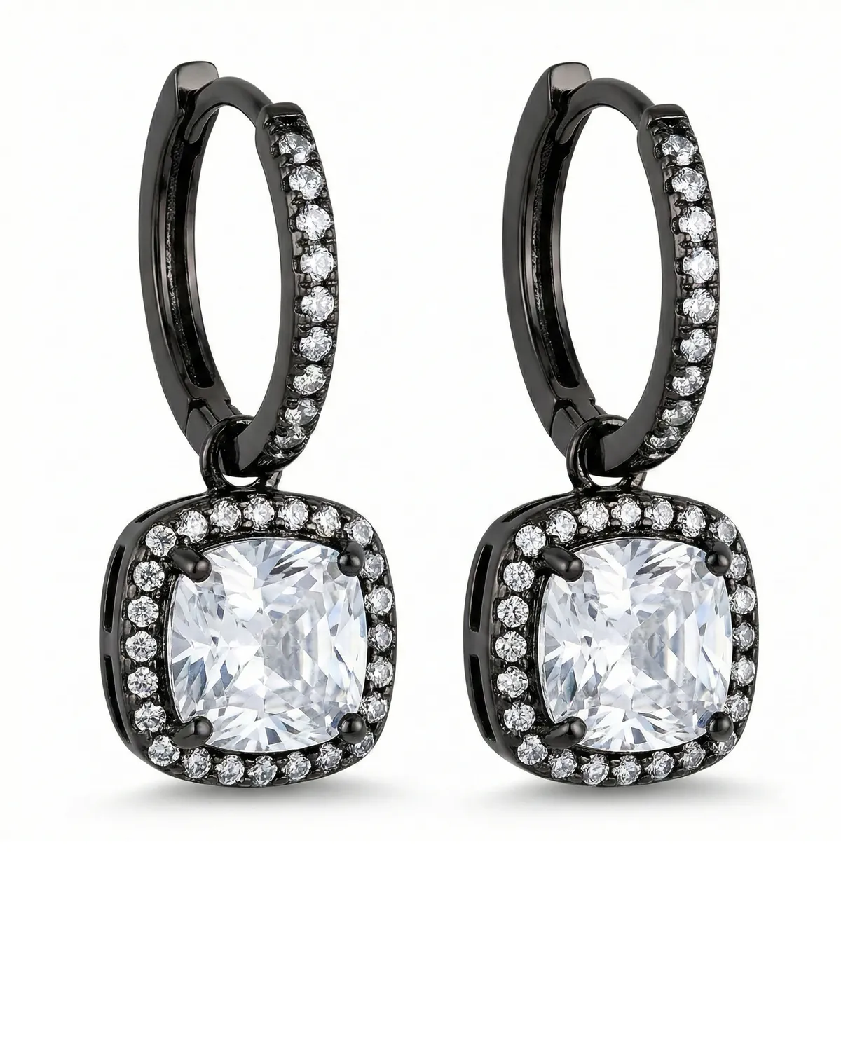 Luksuslikud musta viimistlusega rõngaskõrvarõngad särava valge kristalliga, mis sobivad ideaalselt igaks sündmuseks.