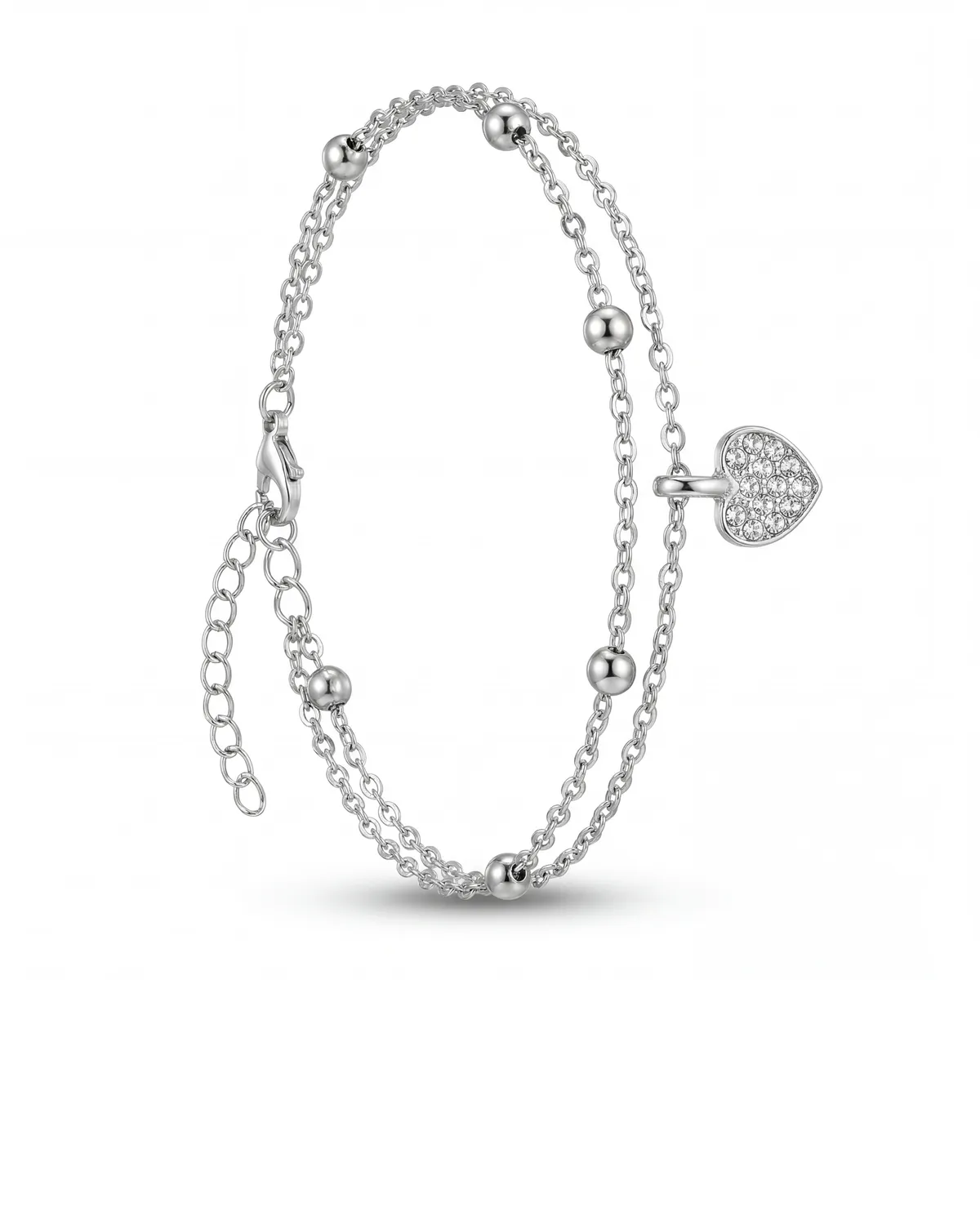 Kaunis kahekihiline jalakett, millel on hõbedased kuulikujulised detailid ja südamekujulise ripatsiga aktsent.
