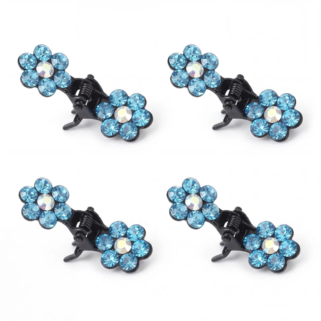 Komplekt neljast lillekujulise disainiga helesinist värvi rhinestones kividega juukseklambrist.