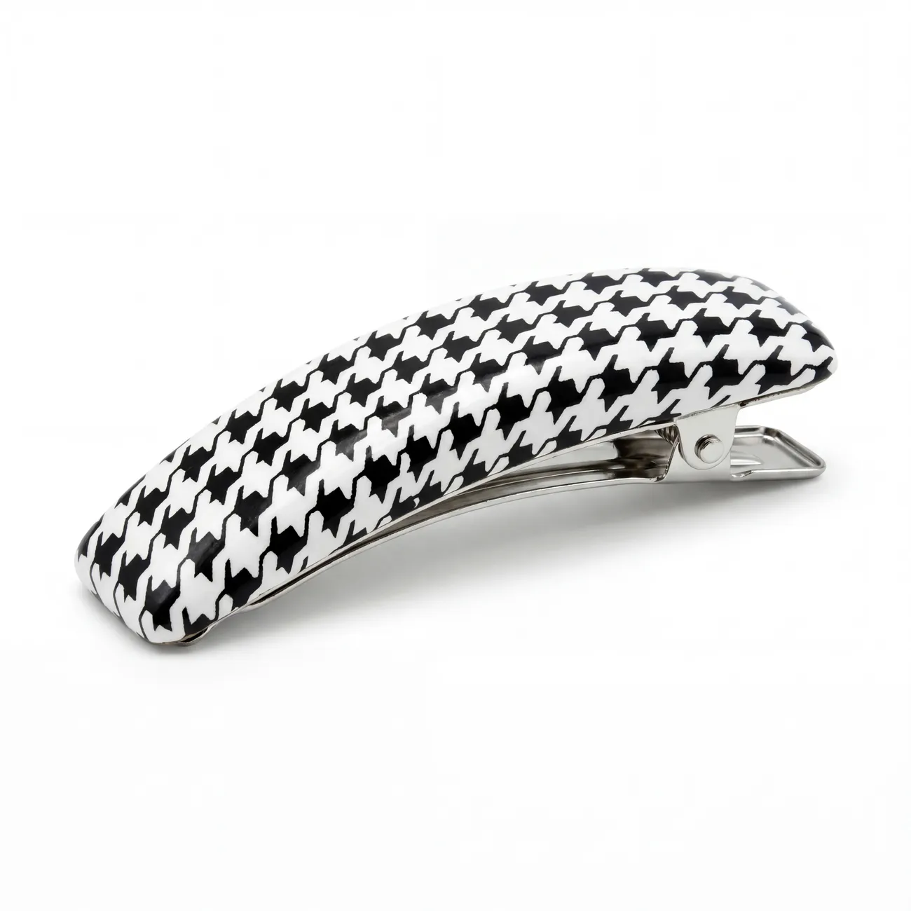 Must-valge ruuduline juukselõks on ideaalne aksessuaar, mis ühendab praktilisuse ja moeka välimuse. Selle kumer disain võimaldab klambril hõlpsasti juustesse kinnitada. Sobib nii igapäevaseks kandmiseks kui ka erilisemateks sündmusteks, kus soovid oma soengule lisada trendika ja unikaalse aktsendi.