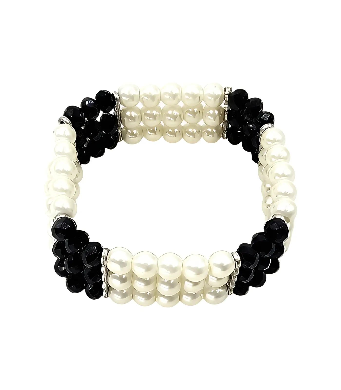 See mitmekihiline lai käevõru ühendab klassikalised beežid pärlid ja sügavalt mustad helmed, luues väljendusrikka ja pilkupüüdva disaini. Mustvalge kombinatsioon on ajatu ja sobib suurepäraselt nii ametlikeks sündmusteks kui ka igapäevasteks elegantseteks koosviibimisteks. Elastne disain tagab mugava sobivuse, võimaldades seda kanda erineva suurusega randmetel. Käevõru on ideaalne valik neile, kes hindavad kontrastset, kuid elegantset stiili.