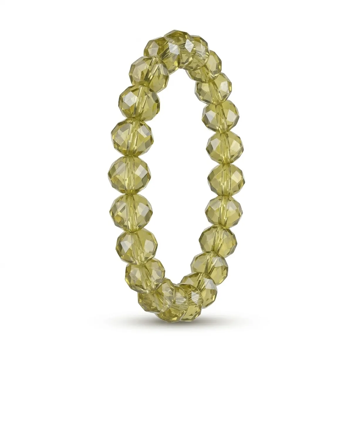 See kvaliteetsetest klaashelmestest valmistatud käevõru on kui püütud päikesekiir sinu randmel, ühendades läbipaistva kollase kirkuse ja väärika oliivirohelise alatooni. Iga 0,8 cm läbimõõduga helmes on peenelt lihvitud, et püüda ja peegeldada valgust, pakkudes kütkestavat sädelust ja luksuslikku välimust. Elastne disain tagab ülima mugavuse ja lihtsuse, kohandudes vaevata erineva suurusega randmetega. See on elegantne ja ajatu aksessuaar, mis lisab igale garderoobile soojust, stiili ja grammi võrra peent valgusmängu, sobides suurepäraselt nii argipäeva ilmestamiseks kui ka eriliste hetkede tähistamiseks.