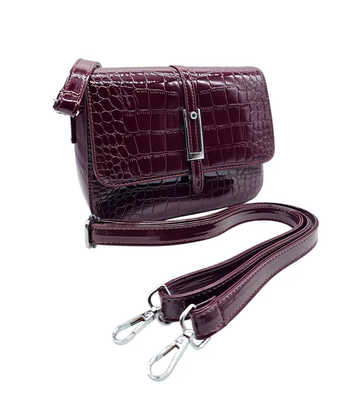 Stiilne ja kompaktne bordoopunane käekott, mille läikiv krokodillimustriline pind loob luksusliku ja pilkupüüdva välimuse. Kaasas kaks äravõetavat rihma – pikk üleõlarihm ja lühike rihm –, mis võimaldavad kotti kanda mitmel erineval moel.