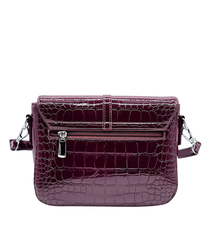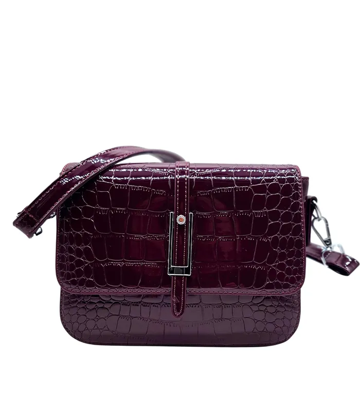 Stiilne ja kompaktne bordoopunane käekott, mille läikiv krokodillimustriline pind loob luksusliku ja pilkupüüdva välimuse. Kaasas kaks äravõetavat rihma – pikk üleõlarihm ja lühike rihm –, mis võimaldavad kotti kanda mitmel erineval moel.
