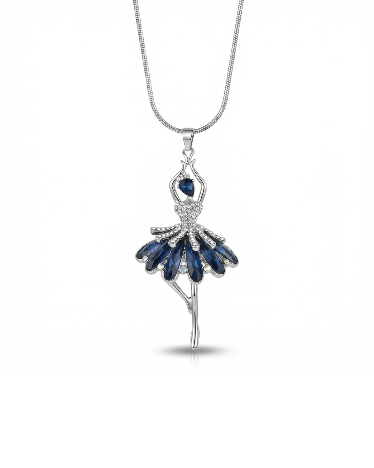 Meta Description: Graatsiline hõbedane kaelaehe “Baleriin” sügavsiniste ja kirkate kristallidega. Pikk kett ja detailne disain. Lisa oma stiilile kunstilist elegantsi ja sära!
