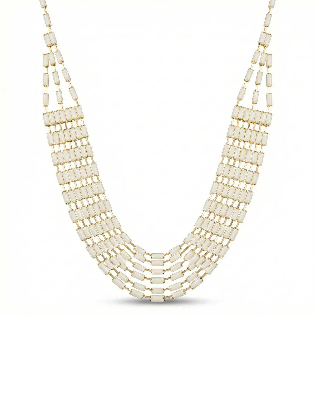 Focus Keyword: Mitmerealine beež ja kuldne kaelakee kihiline disain