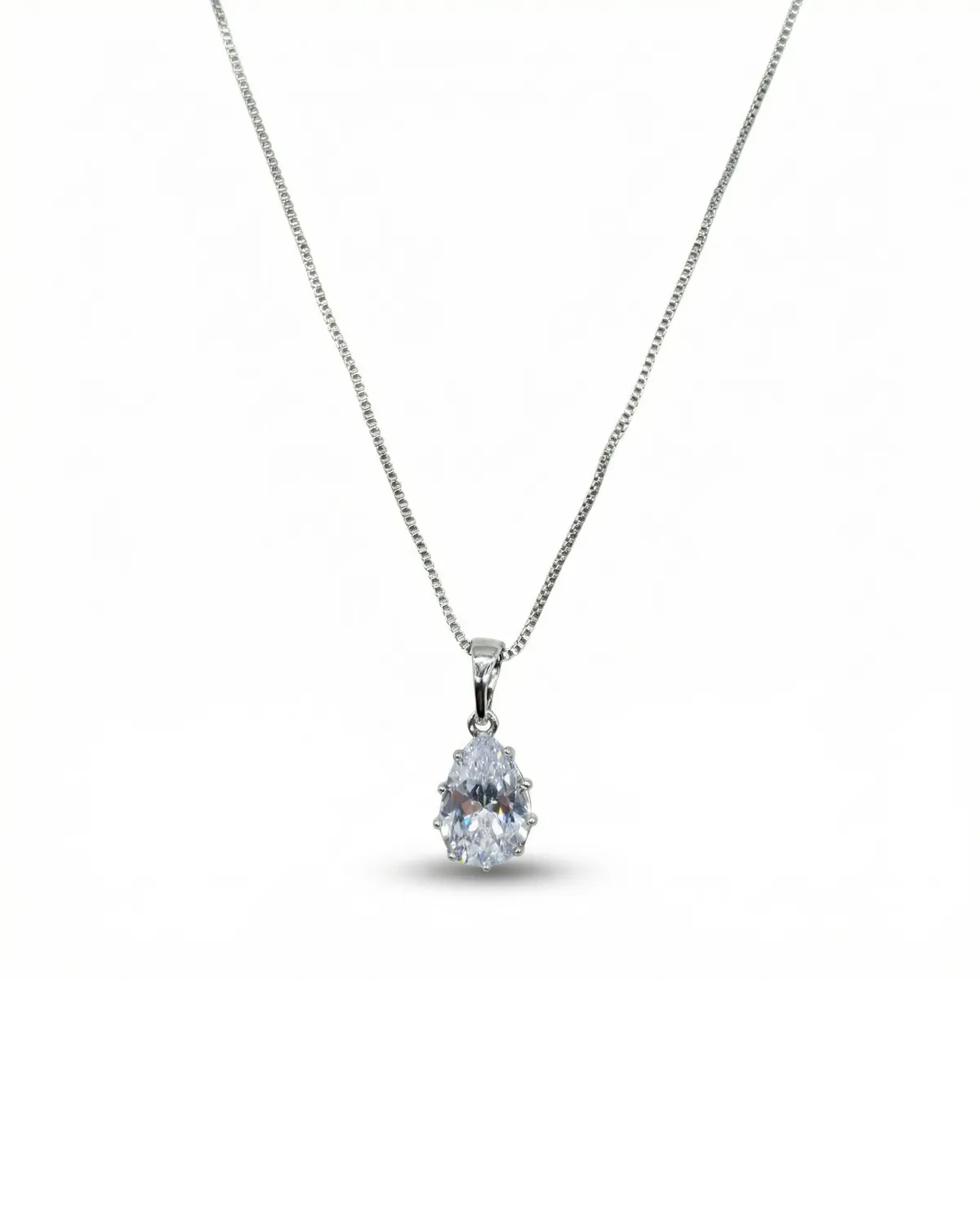 Klassikaline hõbedane tilgakujuline kaelakee, mis sobib ideaalselt nii argipäevaks kui ka pidulikumaks sündmuseks.
