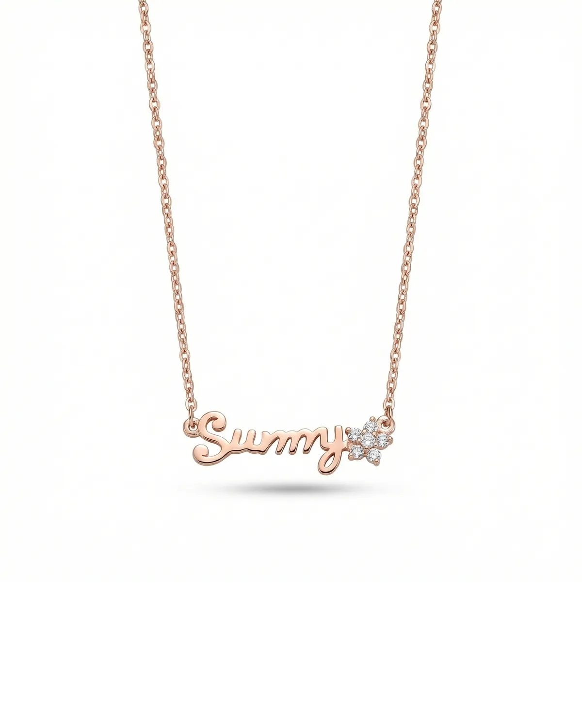 Soe ja särav roosa kulla tooni kaelakee, mille keskmes on kaunilt kirjutatud sõnum “Sunny”. Teksti lõppu kaunistab õrn lillemotiiv, mis on täidetud sätendavate kirgaste kivikestega, lisades ehtele tütarlapselikku rõõmu ja peent läiget. See on armas ja positiivsusest pakatav aksessuaar, mis sobib suurepäraselt igapäevaseks kandmiseks või südamlikuks kingituseks.