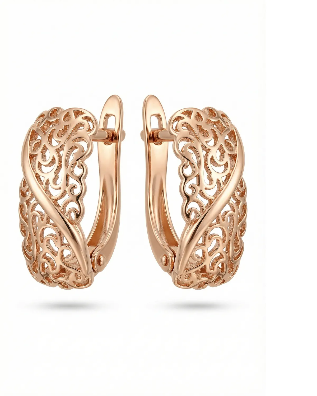 Elegantsed kuldset tooni kõrvarõngad, mida kaunistab õrn pitsiline muster. Avatud ja voolav disain annab ehetele kerge ning naiseliku ilme, tuues esile peene detailitöö. Need kõrvarõngad sobivad suurepäraselt nii igapäevaseks kandmiseks kui ka pidulike sündmuste täiendamiseks.