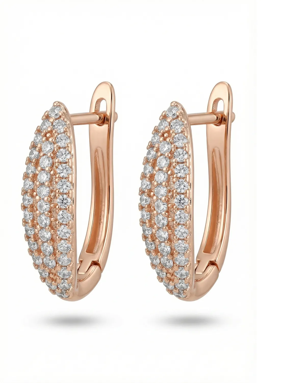 Need elegantsed kõrvarõngad on ideaalne valik, et lisada välimusele luksuslikku ja ajatut sära. Kõrvarõngaste kaarjas kuju on kaunistatud sädelevate väikeste tsirkooniukristallidega, mis peegeldavad valgust ja loovad lummava helgi. Kuldne viimistlus lisab ehetele sooja ja elegantse aktsendi. Tänu nende mugavale kinnitusele ja elegantsele disainile sobivad kõrvarõngad suurepäraselt nii igapäevaseks kandmiseks kui ka eriliste sündmuste jaoks. Klassikaline ja detailirohke disain teeb neist ideaalse aksessuaari, mis täiustab igat riietust.