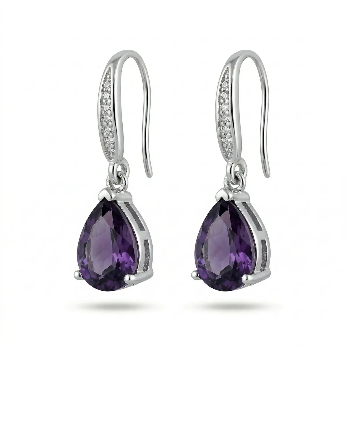 Need elegantsed hõbedased kõrvarõngad tõstavad esile pisarakujulise lilla kivi, mis loob rafineeritud ja naiseliku mulje. Ülemist osa kaunistavad väiksed säravad kivikesed, mis lisavad disainile täiendavat sära ja elegantsi. Rippdisain annab kõrvarõngastele liikuvuse ja kerge mängulise efekti, püüdes valgust igal sinu liigutusel. Need ehted on ideaalne valik nii erilisteks sündmusteks kui ka igapäevaseks kandmiseks, lisades kandjale klassi ja suvist võlu.