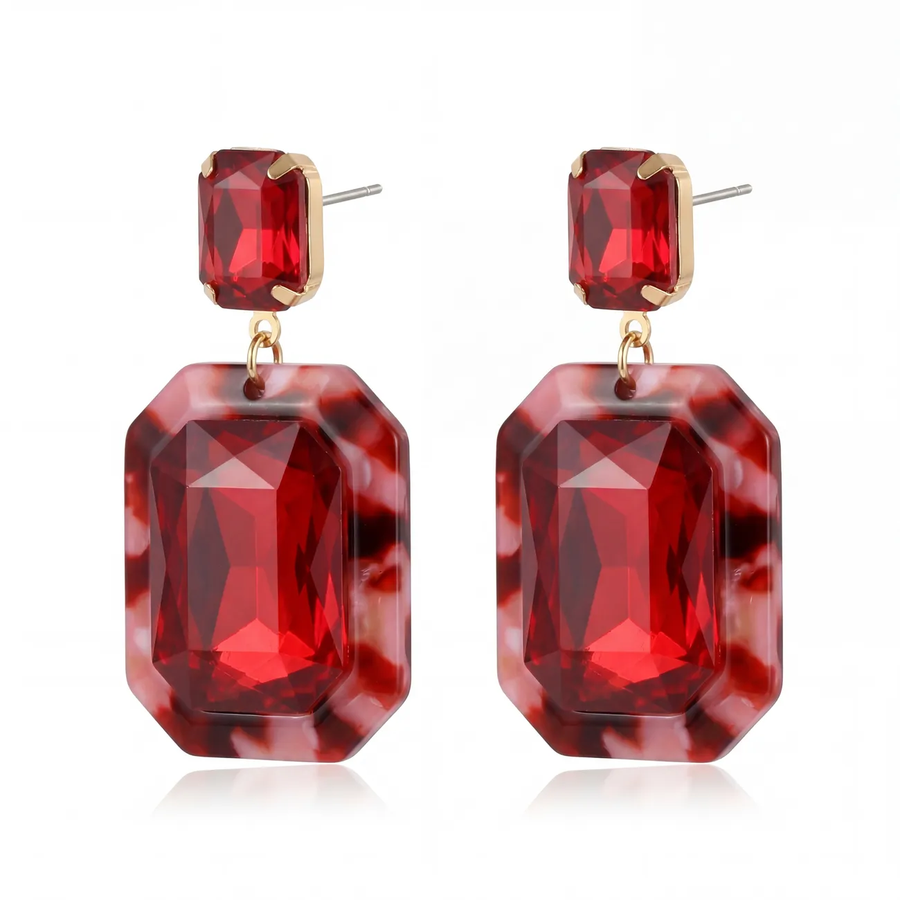 Pilkupüüdvad kõrvarõngad intensiivselt punaste kristallidega ja mitmekihilise disainiga – ideaalne valik julge ja stiilse välimuse jaoks.