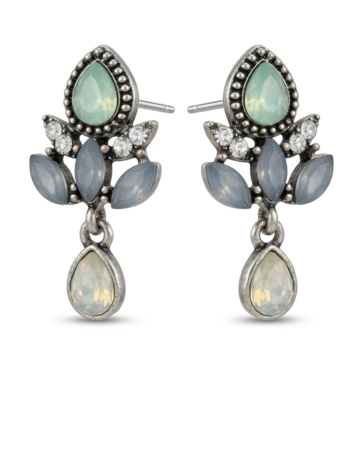 Kõrvarõngaste keskmes olevad kaunid helerohelised ja sinakad kivid on ümbritsetud detailsete aktsentidega, mis annavad neile unikaalse karakteri. Sobivad nii pidulikeks sündmusteks kui ka erilisemateks igapäevasteks hetkedeks. Täiendage oma ehtekollektsiooni nende imekaunite ja naiselike kõrvarõngastega.