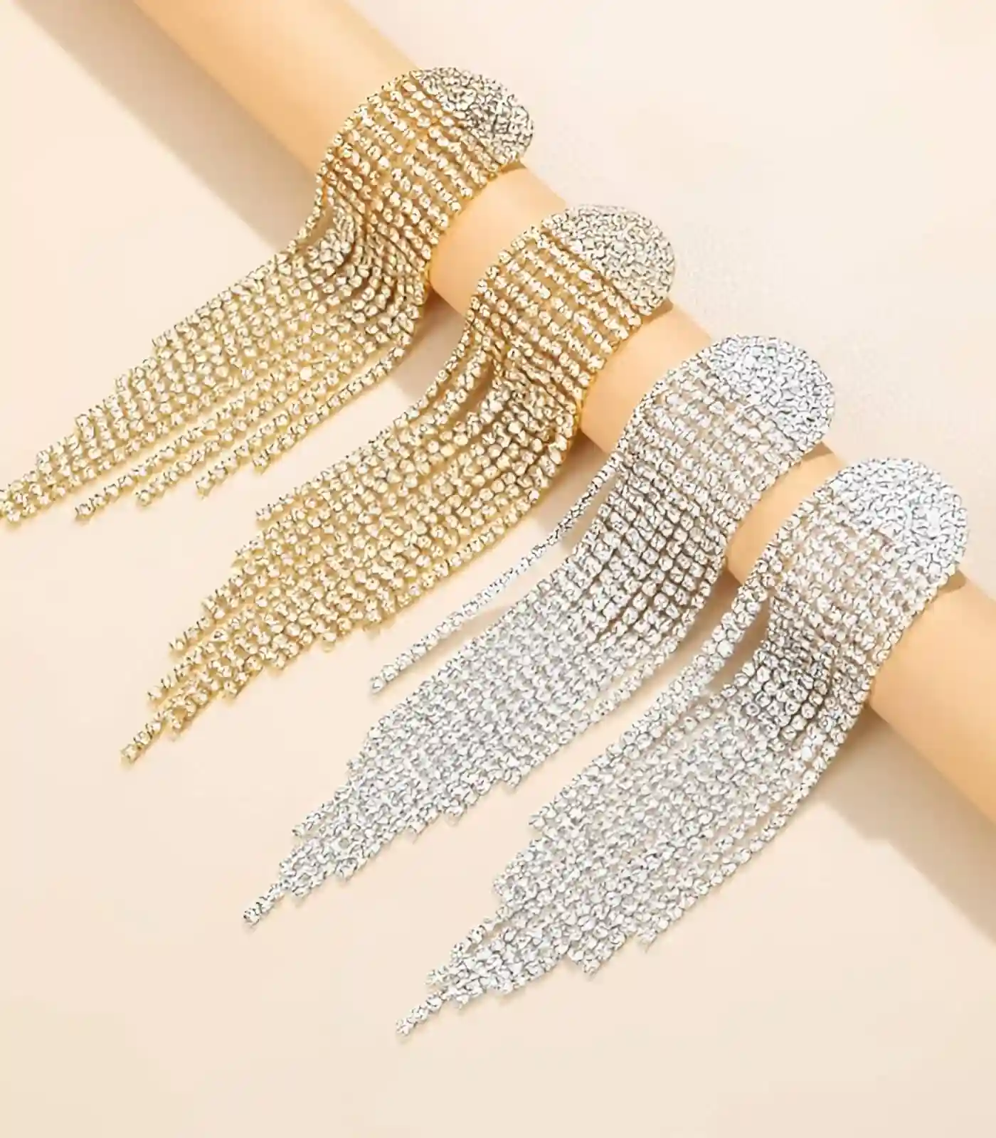 Elegantsed ja jõulised kõrvarõnga on kaunistatud säravate kristallidega, mis loovad kaskaadse efekti. Ideaalne valik pidulikeks üritusteks.