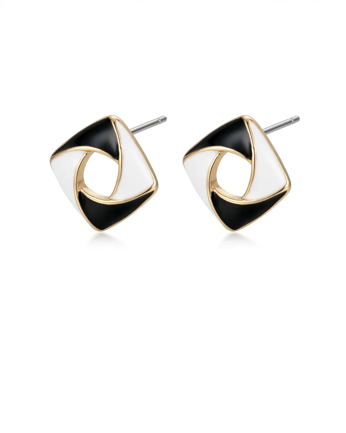 Need šikid ja modernsed nööpkõrvarõngad mängivad meisterlikult klassikalise kontrastiga, tuues Sinu garderoobi tõelise geomeetrilise meistriteose. Ehte disain loob põneva optilise illusiooni – luksusliku kuldse raami sisse on valatud kõrgläikega must ja valge email, mis keerdub sujuvalt ümber avatud keskosa. See ruumiline, peaaegu origami-laadne vorm on visuaalselt äärmiselt kütkestav. Musta ja valge ajatu sümbioos tagab, et need kõrvarõngad sobituvad vaevata iga Sinu valitud riietusega, lisades välimusele intelligentset ja läbimõeldud elegantsi.
