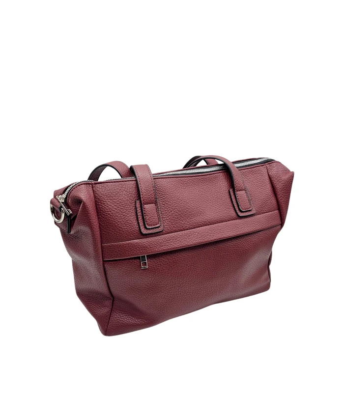 Elegantne bordoopunane õlakott, valmistatud vastupidavast kunstnahast.