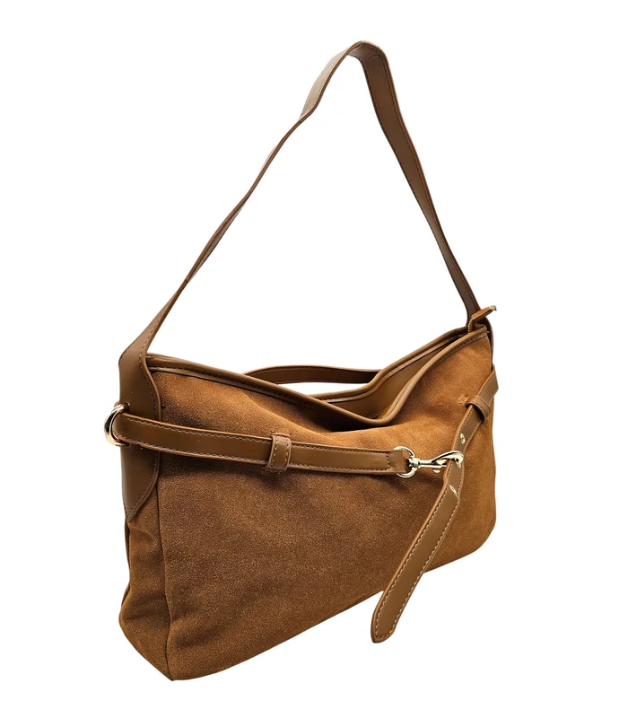 Õlakott – karamellpruun, seemisnahkse viimistlusega