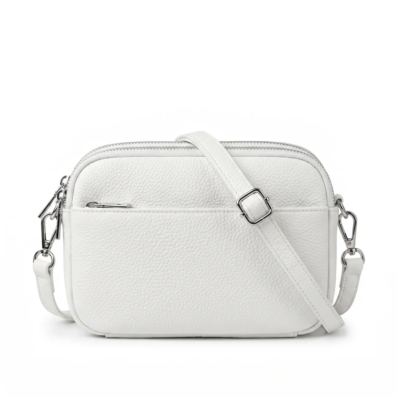 See kauni tekstuuriga kirgas valge õlakott on loodud naisele, kelle jaoks iga asi peab olema kergelt leitav ja omal kohal. Karge valge toon toob Sinu garderoobi suviselt värske hingamise ning sobitub imeliselt heledate riietega. Koti muudab eriliseks selle erakordne taskute süsteem: kolm eraldi lukuga suletavat põhisahtlit pealt ja lisaks üks mugav lukuga esitasku. Nii saad hõlpsasti eraldada telefoni, võtmed, kosmeetika ja dokumendid.