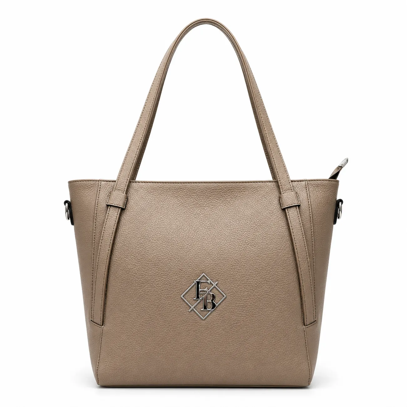 Neutraalne beežikas toon koos hõbedase metallist logoga esiküljel annab kotile modernse ja elegantse ilme.