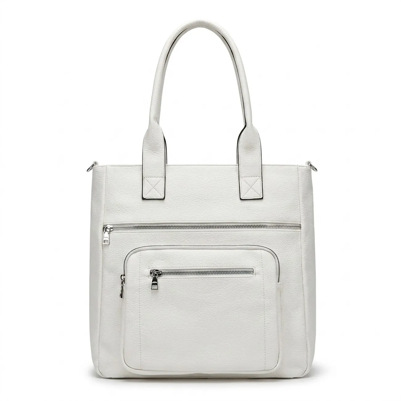 See kauni tekstuuriga kirgas valge kott on tõeline mahutavuse meister, olemata seejuures visuaalselt raske. Vertikaalne ja struktureeritud disain hoiab koti kenasti vormis, samas kui mitmed lukuga esitaskud pakuvad kiiret ligipääsu Sinu kõige olulisematele asjadele. Olenemata sellest, kas suundud kontorisse, loengusse või pikale osturetkule, see kott on disainitud Sinu elutempot toetama.