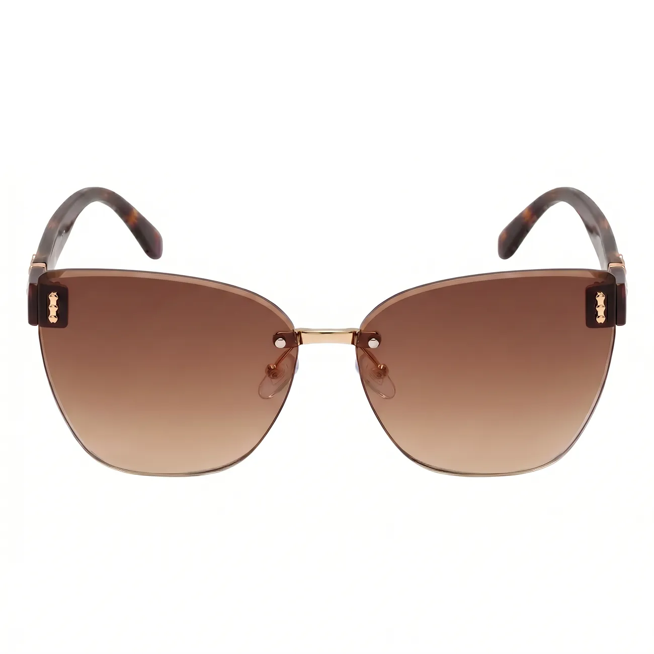 Too oma stiili soojust, luksust ja modernset õhulisust. Need elegantsed päikeseprillid ühendavad endas trendika alt raamita (rimless-style) disaini ja sooja pruuni värviüleminekuga klaasid. Kuldsest metallist ninasild ning sangadel säravad dekoratiivsed detailid lisavad prillidele rafineeritud lihvi, raamides nägu pehmelt ja enesekindlalt. Tänu kergele konstruktsioonile ja gradient-klaasidele on need ideaalsed kaaslased nii eredas päikeses kui ka vahelduva pilvisusega ilmsel, pakkudes silmadele mugavust ja stiilset kaitset.