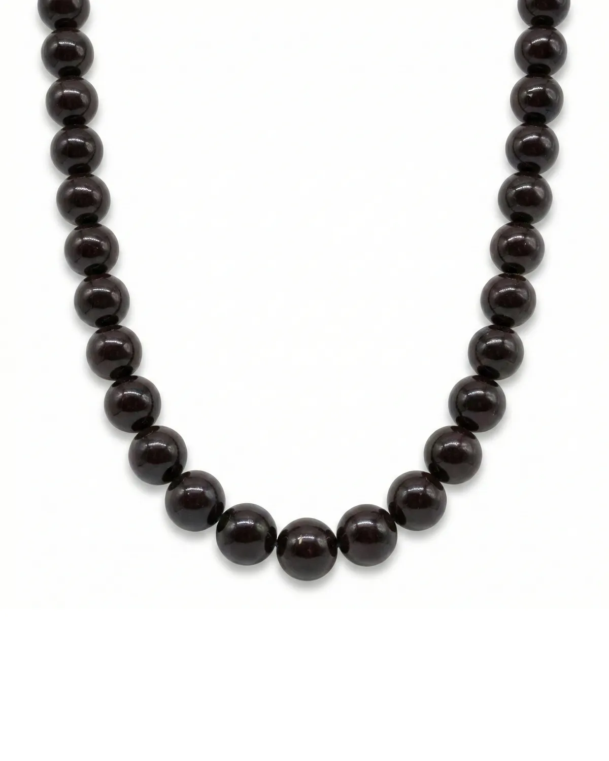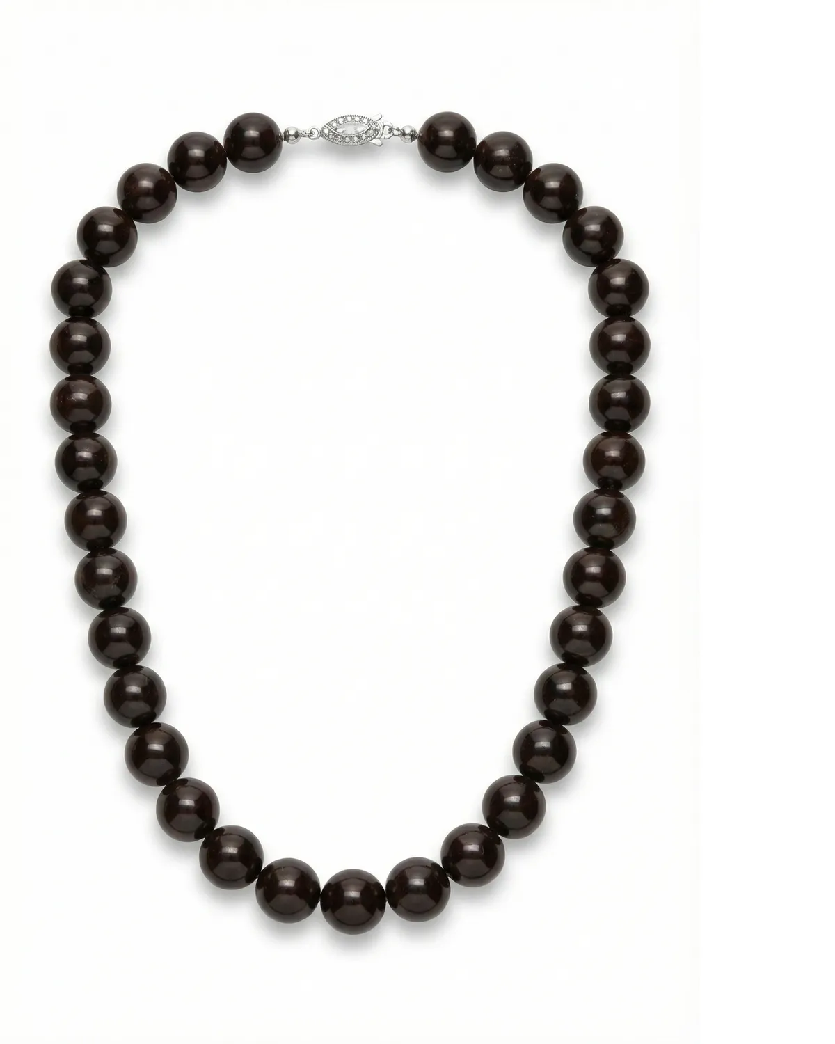 Sügava tumepruuni tooniga ümaratest pärlitest kaelakee, mis lisab igale stiilile ajatut elegantsi.