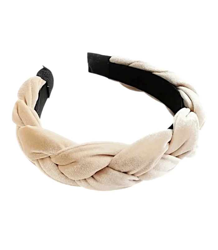Elegantne helebeež peavõru, millel on pehme sametine pind ja punutud disain.