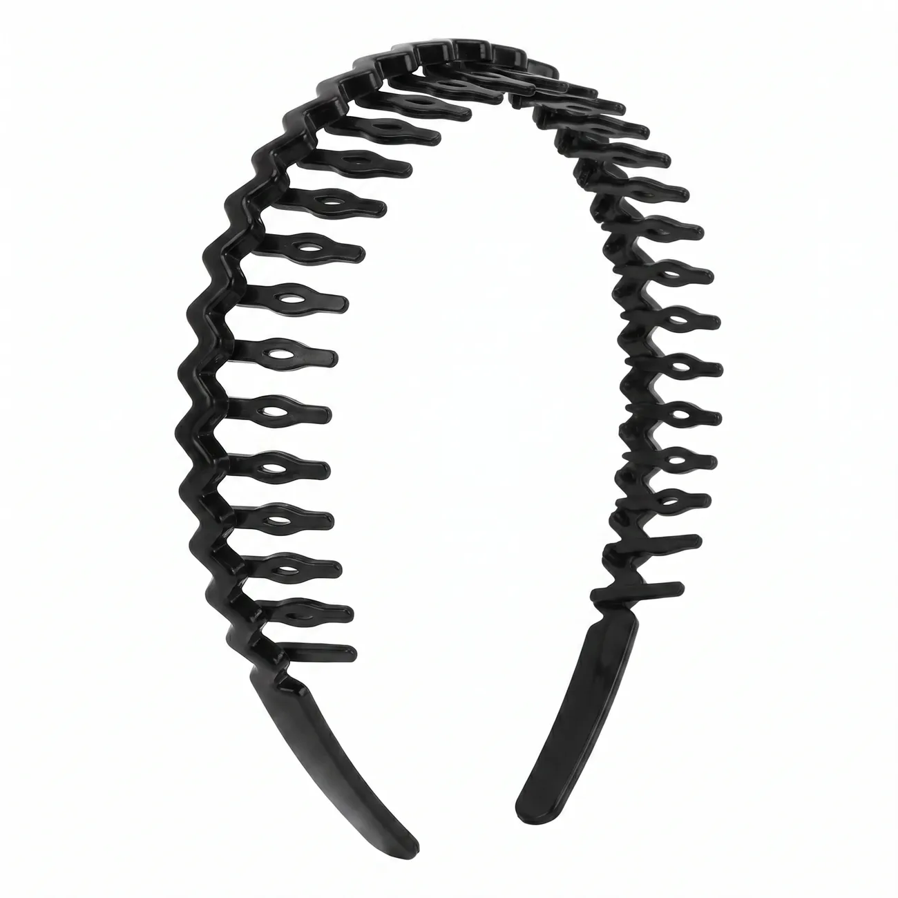 Maksimaalne kontroll ja selgepiiriline stiil. See süsimust pikkade piidega kamm-peavõru on loodud neile, kes vajavad ülitugevat hoidvust ja soovivad luua soengusse efektset “kammitud” tekstuuri. Pikad ja tugevad piid ulatuvad sügavale juustesse, hoides ka kõige paksusid ja kangekaelseid salke kindlalt paigal. See on funktsionaalne aksessuaar, mis ühendab endas sportliku praktilisuse ja modernse minimalistliku välimuse.