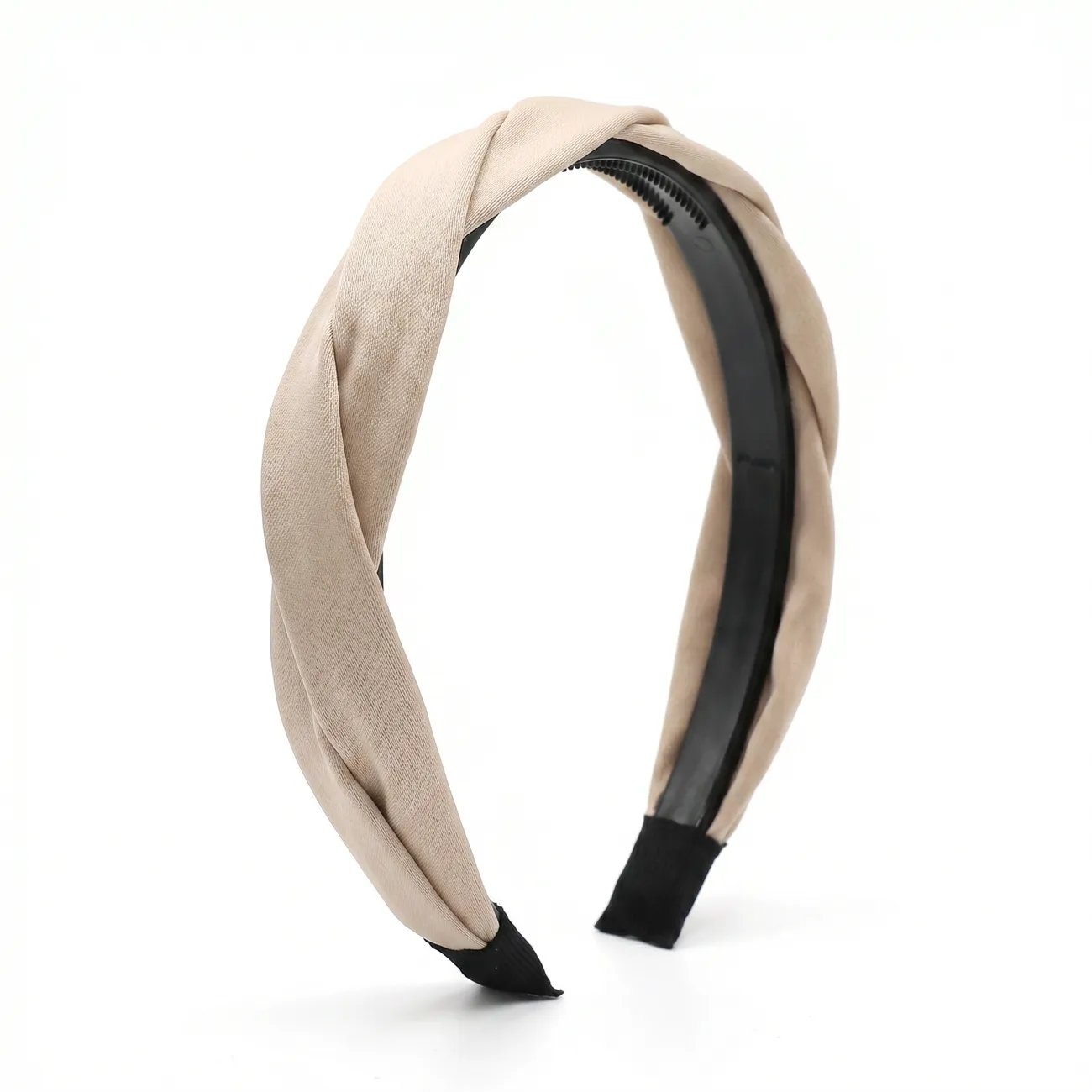 Lisa oma soengule rafineeritud viimistlus ilma liigse pingutuseta. See beež peavõru ühendab endas siledat satiinilaadset kangast ja klassikalist keerutatud disaini, pakkudes visuaalset pehmust ja modernset kuju. Must plastikust raam on varustatud peente hammastega, mis tagavad libisemiskindla hoidvuse ka siledate või peente juuste puhul. See on ideaalne aksessuaar, mis hoiab juuksed näolt eemal, lisades samal ajal Sinu välimusele hoolitsetud ja naiseliku aktsendi.