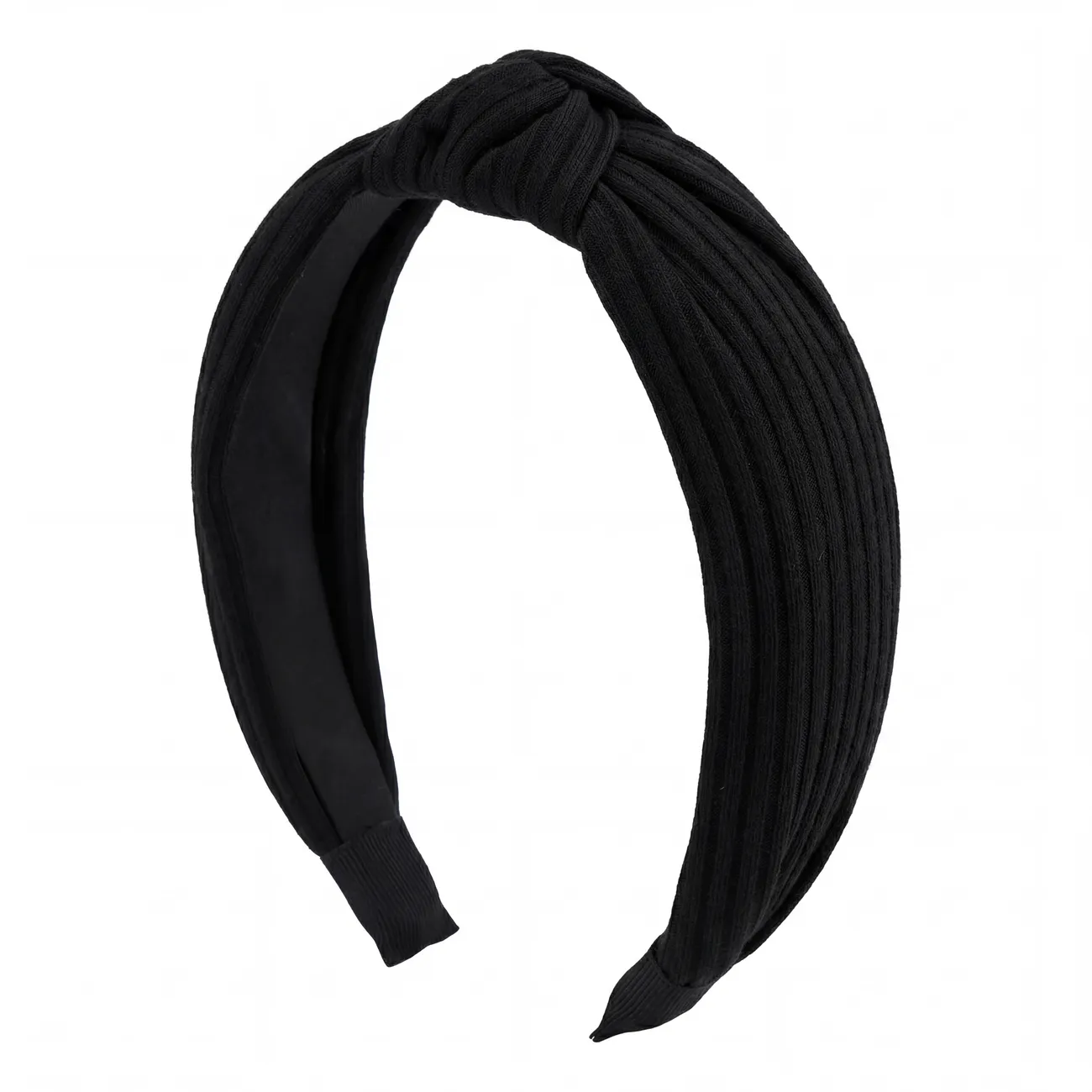 Klassikaline must peavõru, mis on valmistatud tekstuurse kangaga ja kaunistatud sõlmdetailiga.