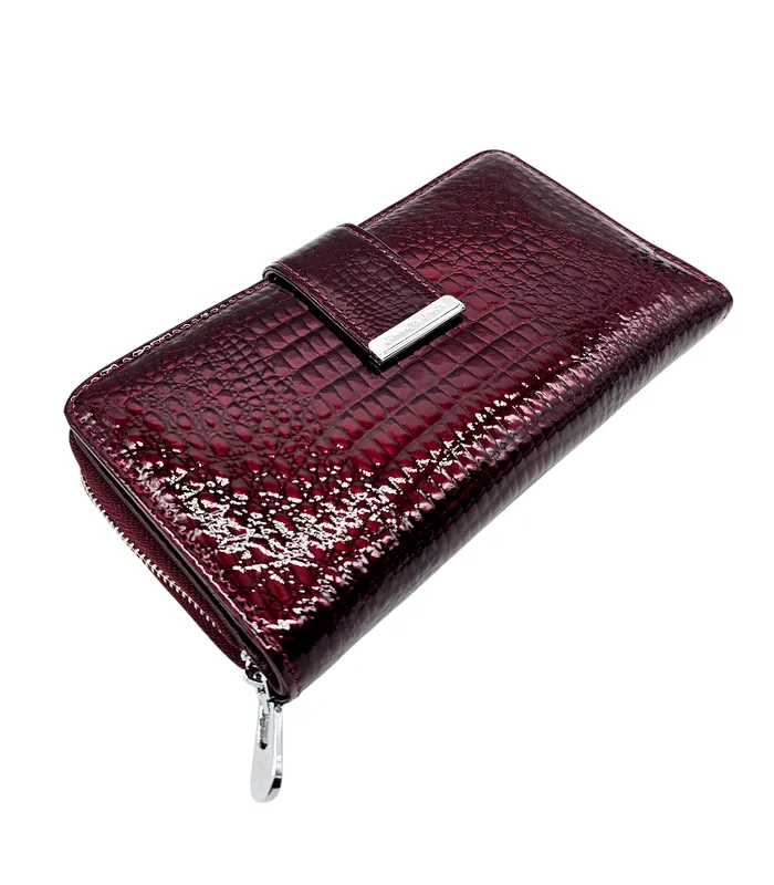Rahakott – bordoopunane, läikiv krokodillimustriline täisnahk