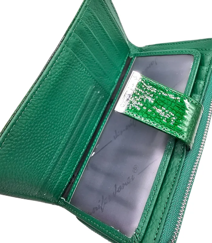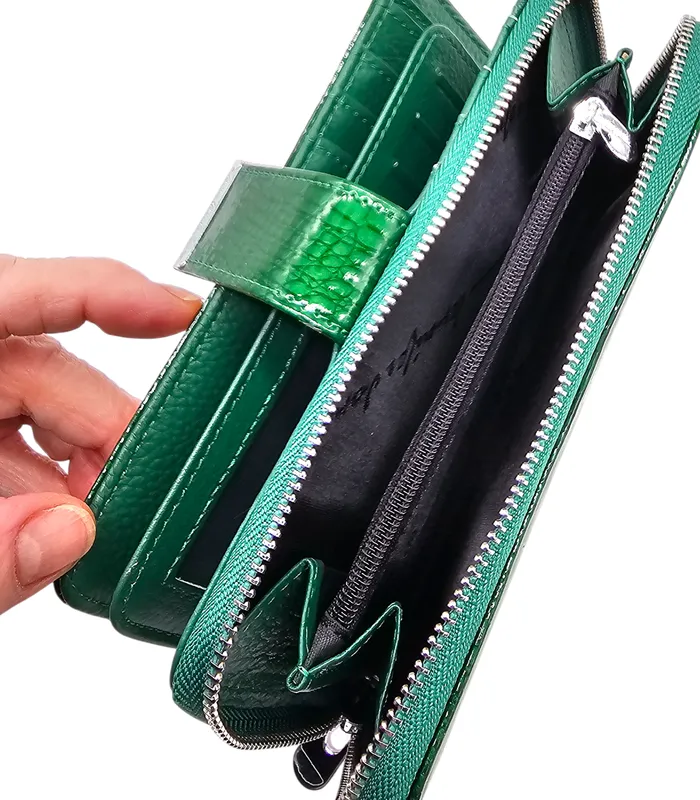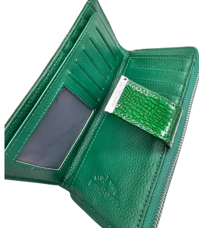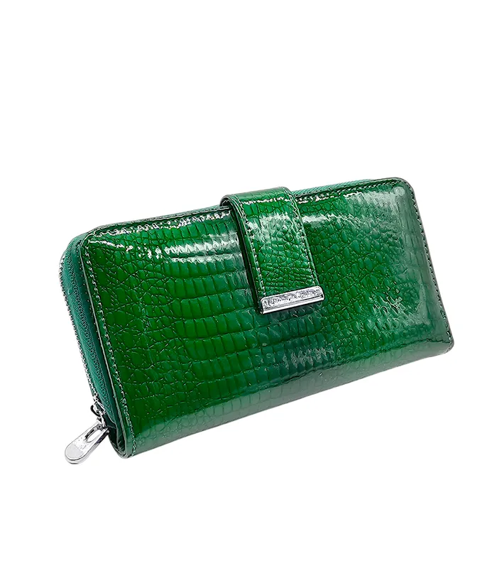 Rahakott – roheline, läikiv krokodillimustriline täisnahk