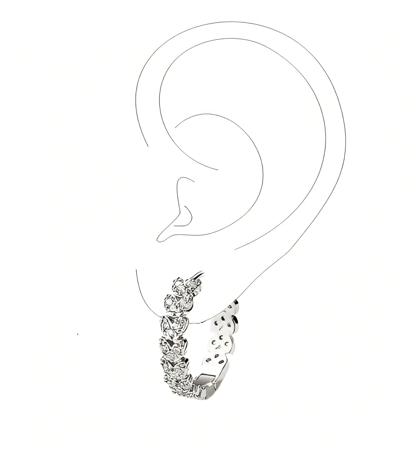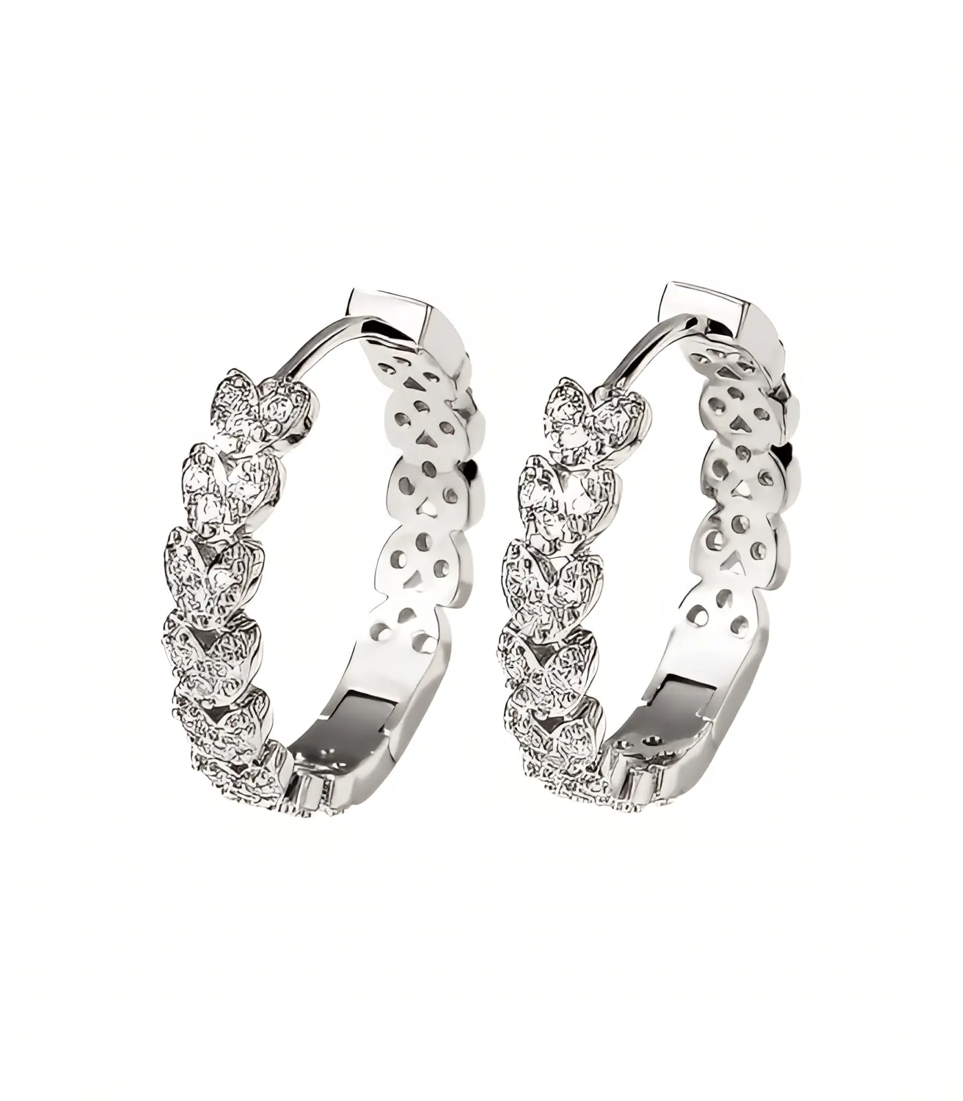Need kaunid südamekujuliselt kaunistatud hõbedased rõngaskõrvarõngad on ideaalne valik, et lisada igale riietusele elegantsi ja särtsu. Kõrvarõngaste disain on läbimõeldud ja ajatu, pakkudes õrna sära, mida toovad esile südamekujulised tsirkoonid, mis on paigutatud ilusasse mustrisse. Iga detail on hoolikalt kavandatud, et rõhutada kõrvarõngaste peent ja luksuslikku välimust.