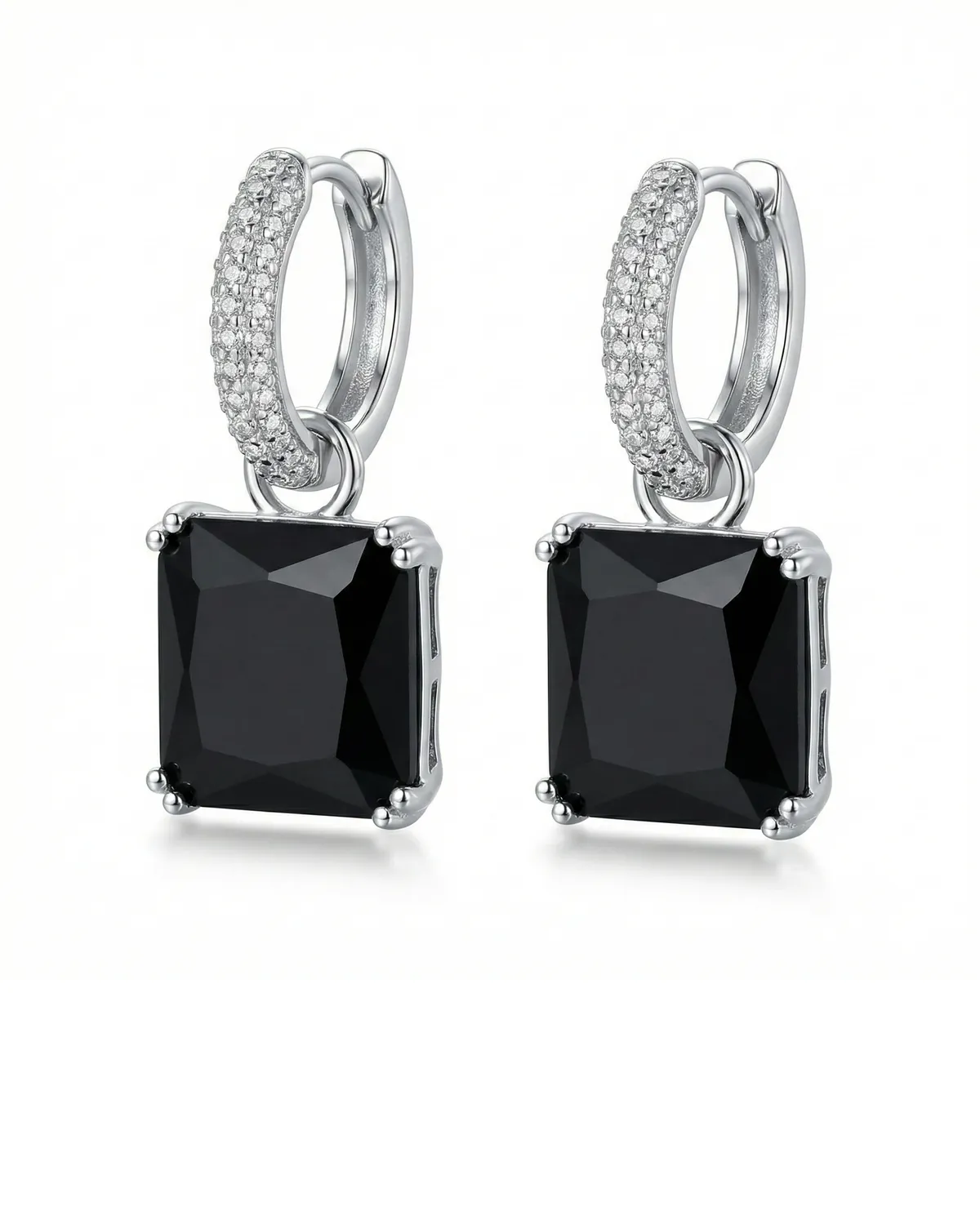 Need kõrvarõngad on täiuslik sulam klassikalisest hõbedasest särast ja sügavmustast elegantsist. Kirkalt sätendavate tsirkoonidega kaetud rõngaste küljes ripub suur ja luksuslik ruudukujuline must kristall, mis on asetatud hõbedasse pesasse. Sarnaselt eelmisele mudelile on ka selle paari ripats kergesti eemaldatav, pakkudes Sulle “kaks-ühes” lahendust: kanna neid pilkupüüdvate statement-kõrvarõngastena või eemalda ripatsid ja naudi minimalistlikku sätendavat rõngadisaini. Hõbeda ja musta kombinatsioon on ajatu valik, mis lisab igale riietusele šikki ja enesekindlat aktsenti.