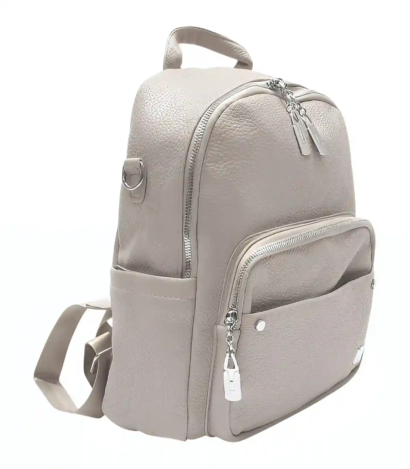 See elegantne helelilla seljakott on ideaalne aksessuaar igapäevaseks kasutuseks. Seljakott on praktiline, stiilne ja valmistatud kvaliteetsest pehmest kunstnahast. Hõbedased detailid lisavad kotile kaasaegset hõngu. Seljakott mahutab hõlpsasti kõik vajaliku ja on suurepärane valik nii linnas jalutamiseks kui ka tööle või kooli minekuks.
