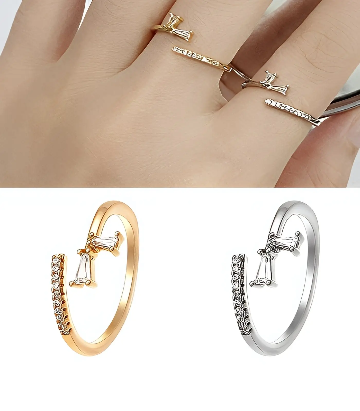 Sõrmus – Sädelev kuldne lips on kaunistatud väikeste valgete tsirkooniumkividega.